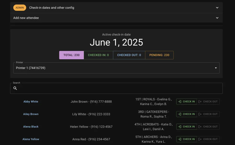 Non-ProfitKiosk-style web app that prints child name tags, tracks attendance, and manages secure check-out for services & events.