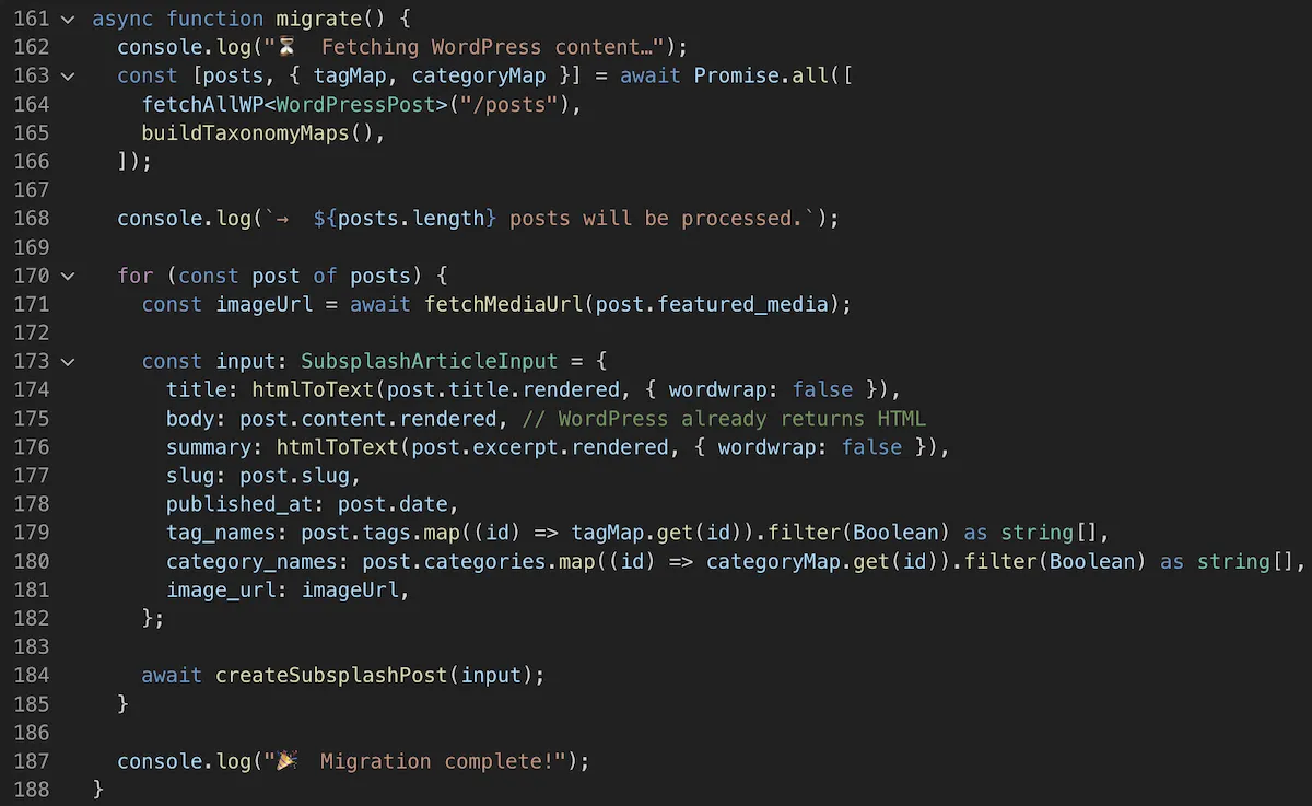 AutomationScripted migration of videos, audio, tags, categories, and blog posts from WordPress to Subsplash, with file uploads and metadata checks.